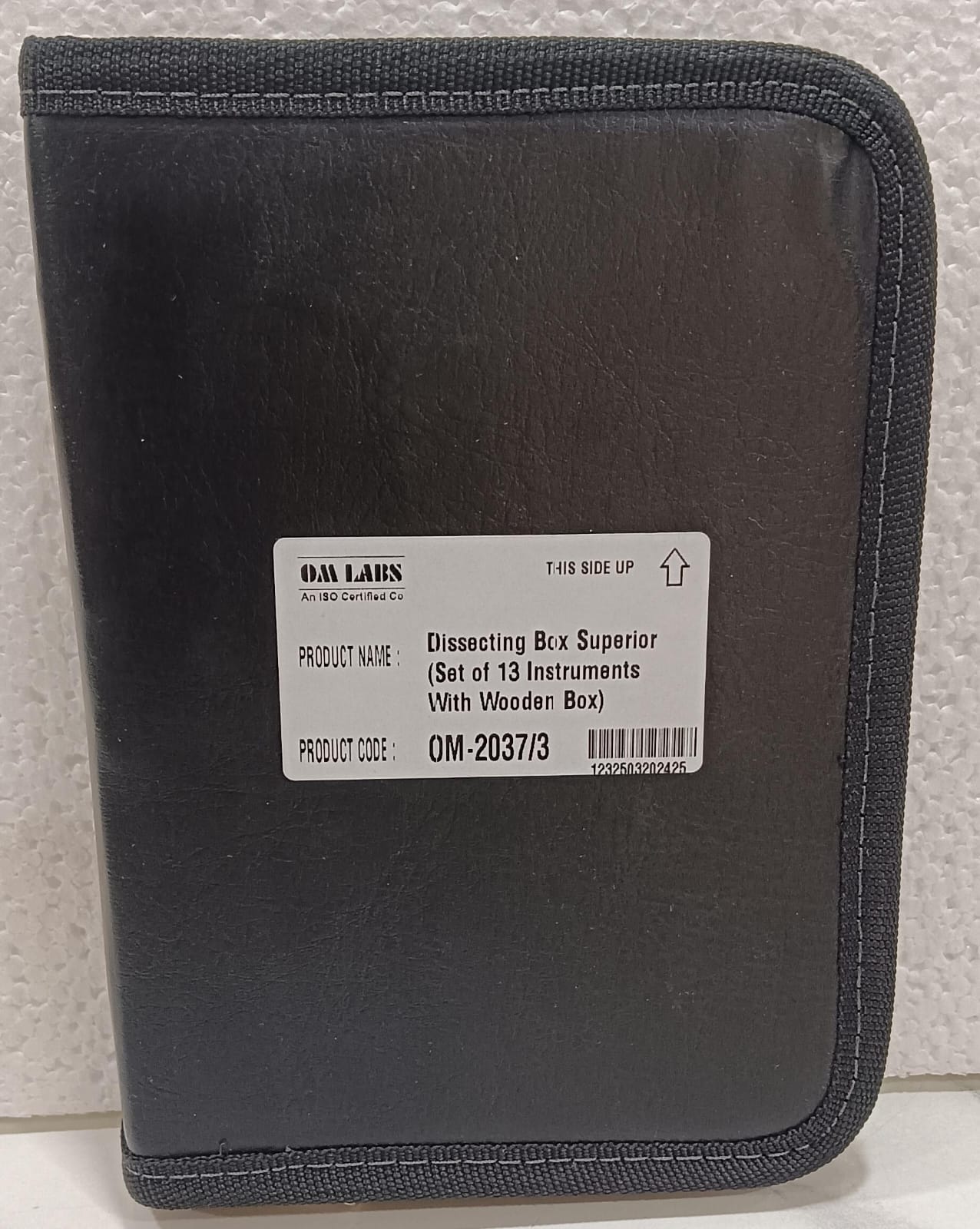 SPECIFICATION : This is a dissecting Kit of 13 dissecting tools packed in a Pouch. This Kit includes variety of instruments like Scalpels, Scissors, Forceps, Tweezers and probes, all designed for precise cutting and examination of Biological Specimens. Dissecting Kits are Specialized tools used in science and laboratory Specimens.