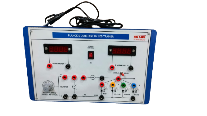 We use LEDs in this experiment because each color of LED has different threshold voltage at which electrons starts being produced. Measuring this voltage together with known values for the emission wavelength provides a path to finding a value for the Planck Constant. LED’s work on the principal of electroluminescence.