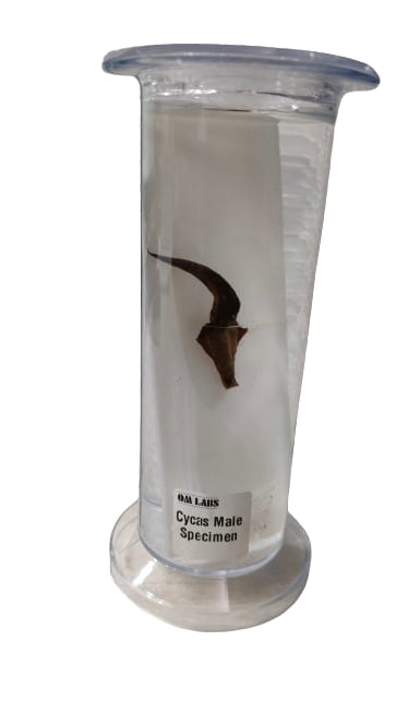 Specification: This is a live morphology of Cycas male specimen. It belong to plant kingdom. They can not produce any flower because it is a gymnosperm. The main body of Cycas is a diploid sporophyte. It is preserved in acrylic jar with help of formalin or formaldehyde solution in jar & used to display in biology labs for demonstration purpose.