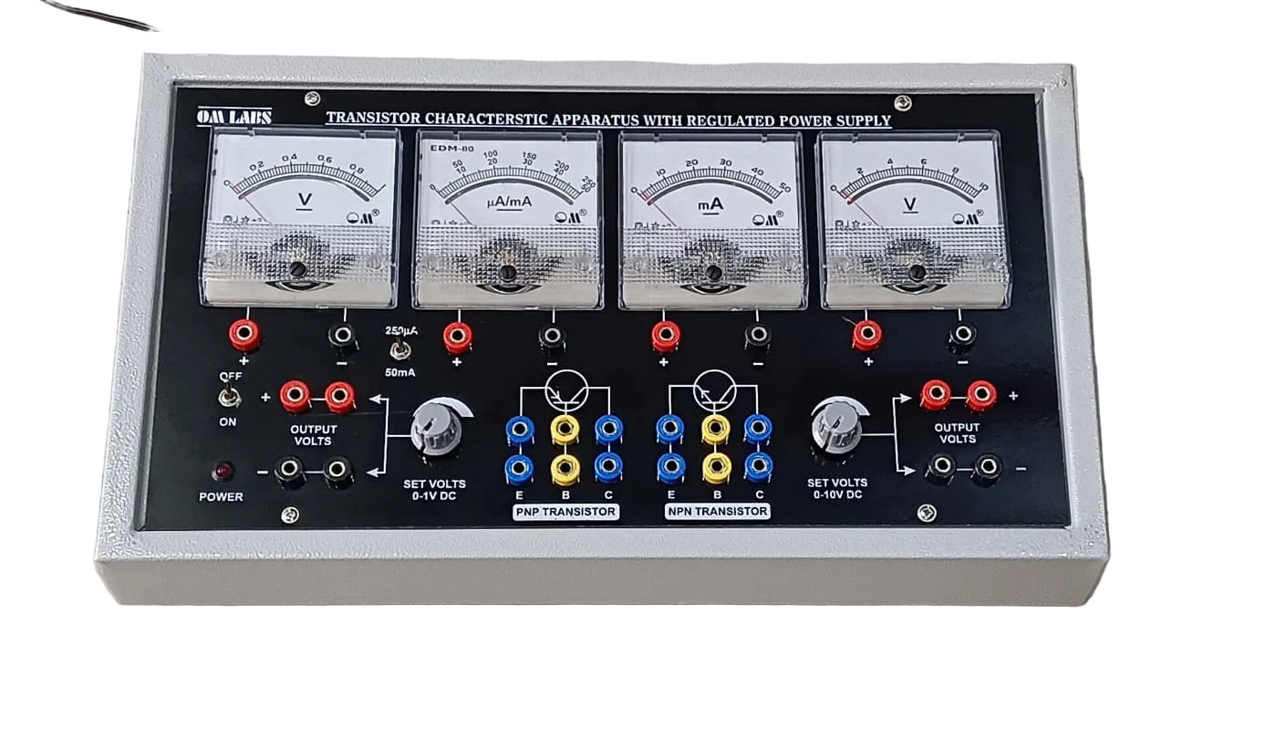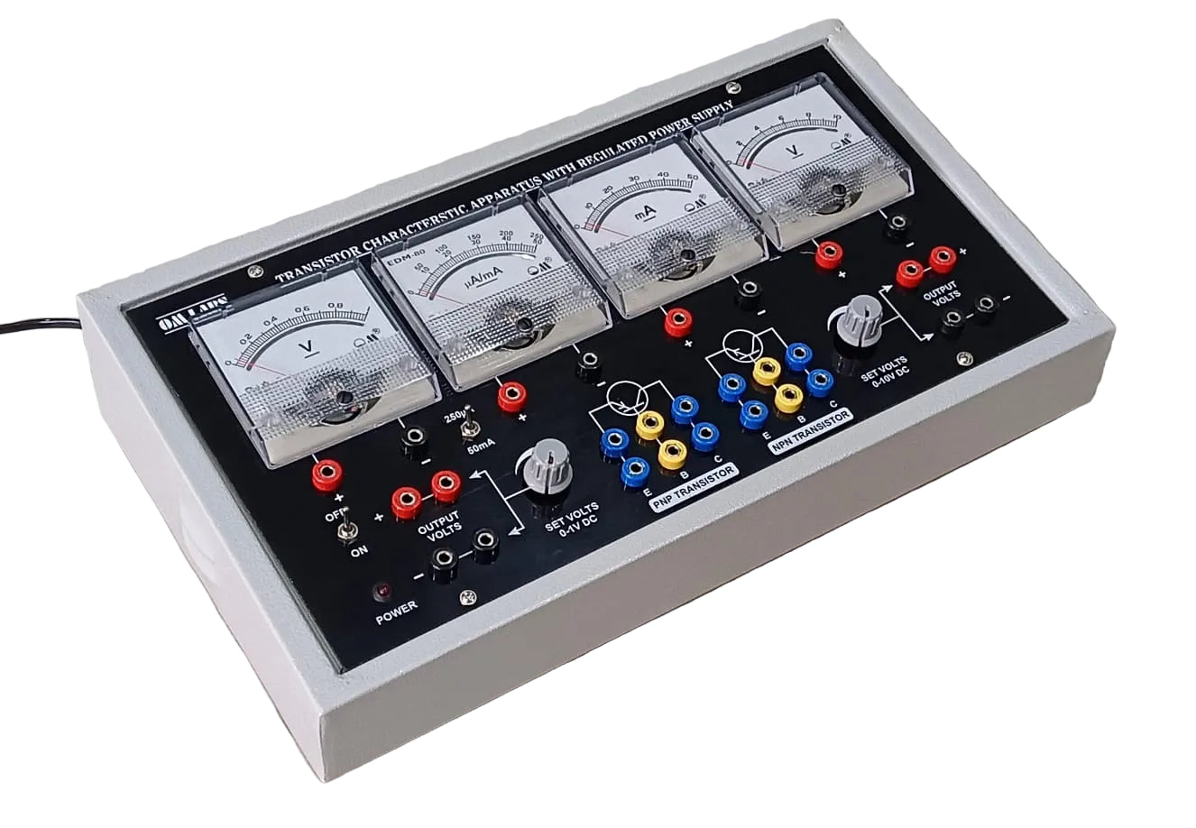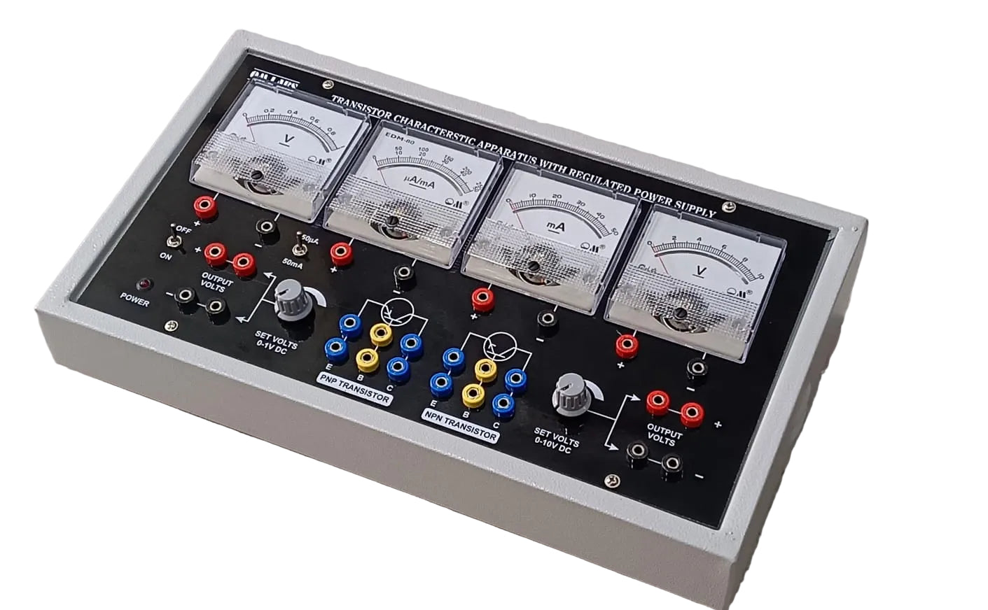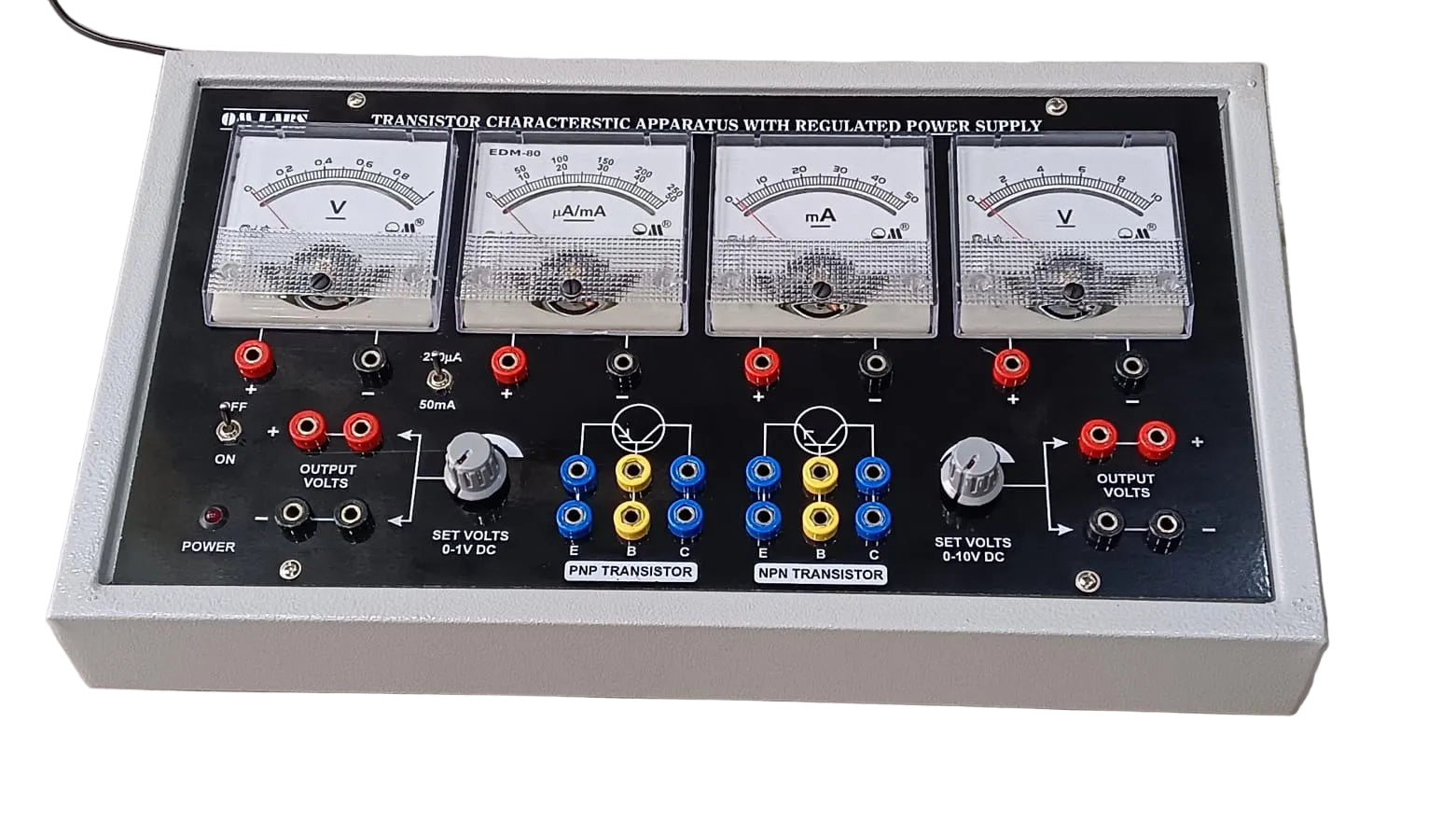 Transistor Characteristics apparatus is used for doing the practical of NPN & PNP transistor in Common base & Common Emitter mode.